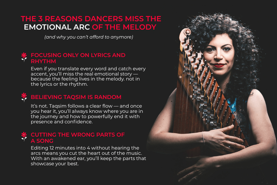 🎁"Positively Powerful Emotion & Expression” with Sahira Once you’ve unlocked the emotion behind the music inside Maqam for Dancers, you’ll want to express it fully on stage.That’s why dance instructor Sahira has created this exclusive mini-course, guiding you to bring your new emotional depth to life through authentic expression and stage presence.